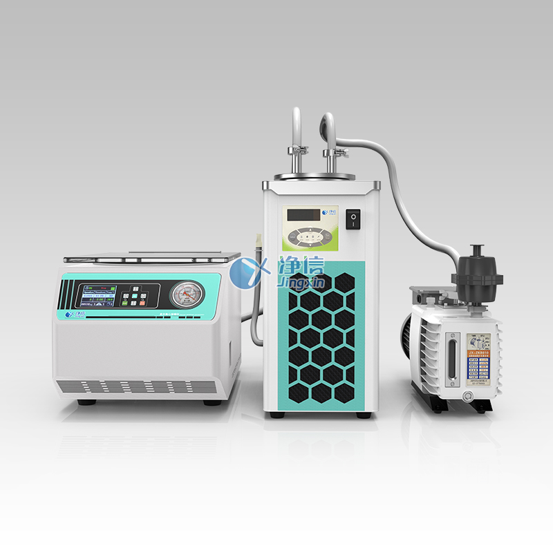 真空泵使整个系统内部处于高真空状态,降低溶剂的沸点,加快浓缩速度。溶剂蒸汽被真空泵抽离离心腔,真空泵的抽速会限制浓缩速度,这时就需要一个能有效冷凝溶剂蒸汽的冷阱,冷阱可以快速冷凝到达真空泵之前的溶剂蒸汽,保持整个系统的真空度,从而加快浓缩速度,并且能保护真空泵不被溶剂蒸汽腐蚀。